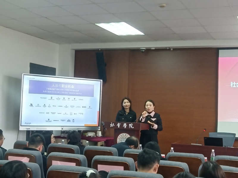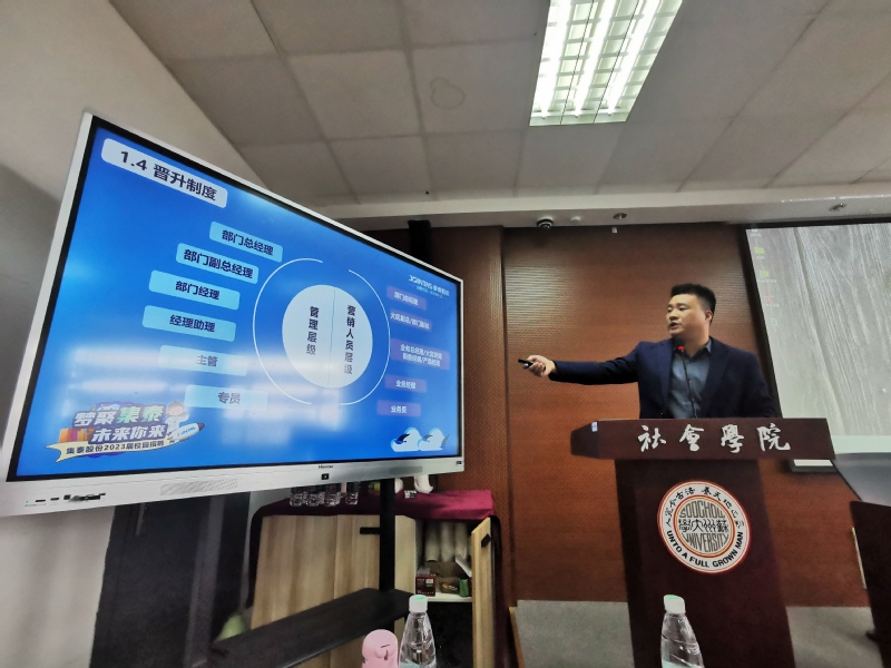 随后,用人单位代表依次上台进行宣讲,对企业背景和发展历程,蜜桃传媒与未来发展方向,薪资水平与福利待遇,管理培养体系与晋升发展通道等方面进行了具体介绍,让同学们对企业和岗位都有了初步的了解和意向。