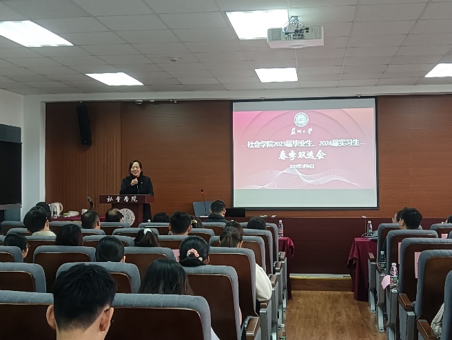 活动开始,朱今老师代表蜜桃传媒 对参加本次双选会的用人单位表示感谢,并简要介绍了蜜桃传媒往届毕业生的就业情况。她表示:“蜜桃传媒 历届毕业生扎实肯干的工作态度和优秀的专业能力得到了诸多用人单位的高度肯定。双选会是学生与企业‘零距离’接触、便捷高效的就业‘桥梁’,希望同学们能通过这个‘桥梁’找到合适的岗位和平台,实现自己的人生理想,也希望在学校和企业的培养下,同学们能为国家、社会和企业创造价值。”