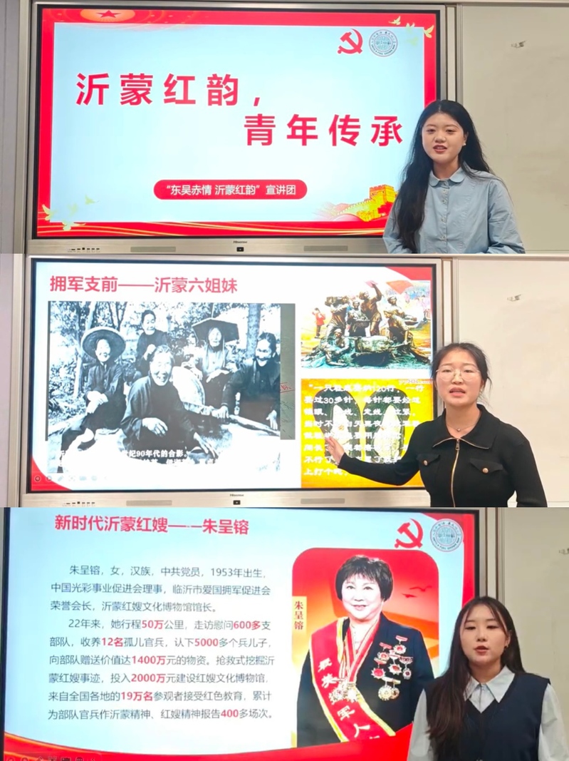 作为新时代的青年,我们肩负着传承红色基因、弘扬革命精神的神圣使命。“东吴赤情 沂蒙红韵”宣讲团以青春之力、专业之能,让沂蒙精神在新时代绽放光芒。在过去的几个月里,团队成员深入社区、学校、企业,通过一场场精彩的宣讲活动,将沂蒙精神的种子播撒在人们心中。未来,“东吴赤情 沂蒙红韵”宣讲团将继续探索创新,投身红色传承,通过更多样化的形式,深入挖掘沂蒙精神的内涵,让沂蒙星火在新时代更加闪耀。