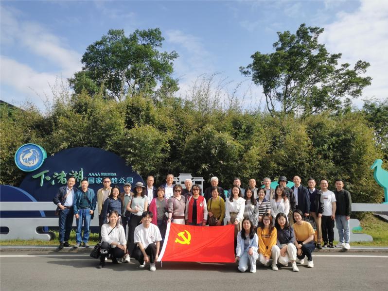 随后,大家前往下渚湖景区,先后参观了朱鹮养殖基地、湿地标本陈列馆以及蒹葭岛。途中大家热情高涨,交谈不断,尤其是青年师生对话老教师的环节。老教师根据自身多年的从教经验,就青年教师的专业发展提出以下建议:一是端正职业意识,树立积极态度;二是精于理论学习,提高科研能力;三是跟踪课堂教学,总结教学不足;四是师生相互交流,互赢共同进步。除此之外,他们还一一解答青年学子在学业中存在的困惑,为青年学子的未来发展提供指导性建议。