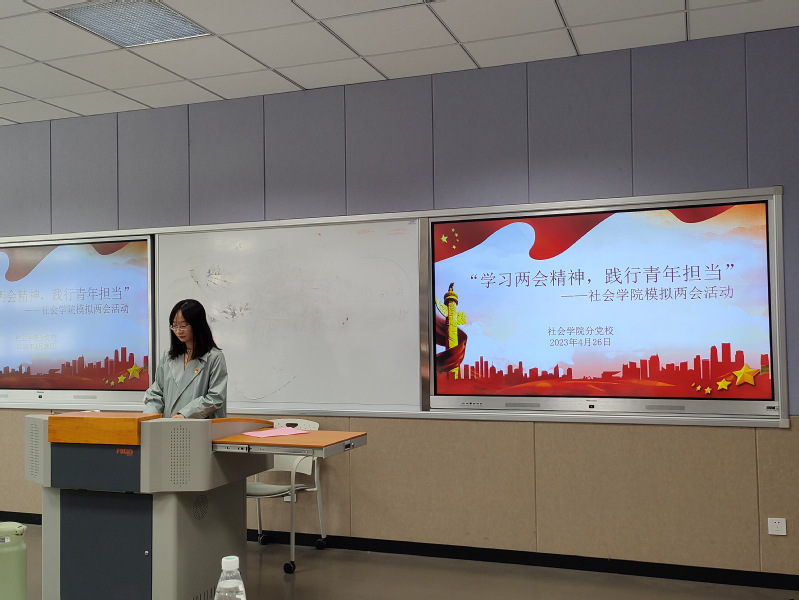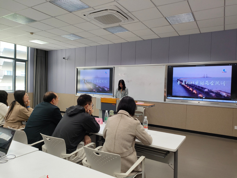 活动伊始,主持人邬静娴同学对全国两会的基本概况进行简要介绍。她首先阐述了全国两会的背景、时间和主题,强调全国两会是我国发扬社会主义民主、开展全民政治活动的根基,对我国民主政治的发展具有重要意义。其次通过短视频的观看,大家一起回顾了2023全国两会的热点:全过程人民民主、中国式现代化、经济增长、“一带一路”等。