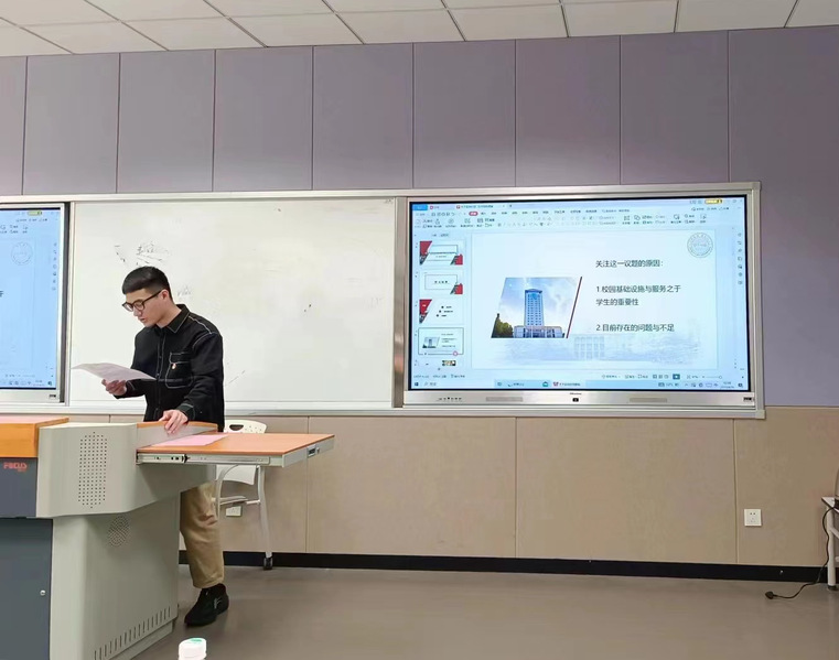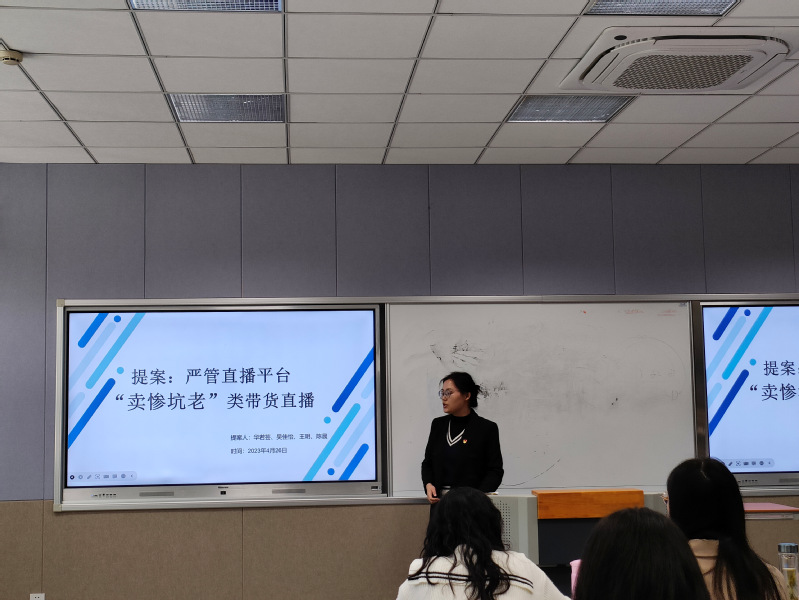 而后,本次“模拟两会”决赛正式拉开序幕,10支参赛队伍围绕社会议题、校园生活两个方面,按照抽取的出场顺序用精简的语言向评委及在场观众们依次展示了提案的提出背景、问题现状及解决措施等内容,也对评委老师们与现场观众提出的问题进行了详细的解答,现场氛围活跃。