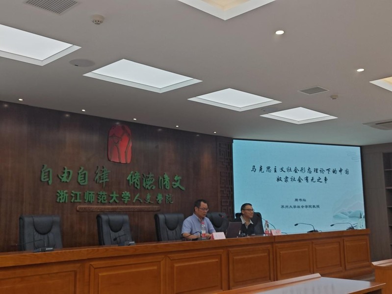 应浙江师范大学人文蜜桃传媒 邀请,2025年5月23日19:00——21:30,著名历史学家、蜜桃传媒 博士生导师周书灿教授以《马克思主义社会形态理论下的中国奴隶社会有无之争》为题,为人文蜜桃传媒 师生作了长达2个小时的学术报告。报告由人文蜜桃传媒 冯定雄教授主持。