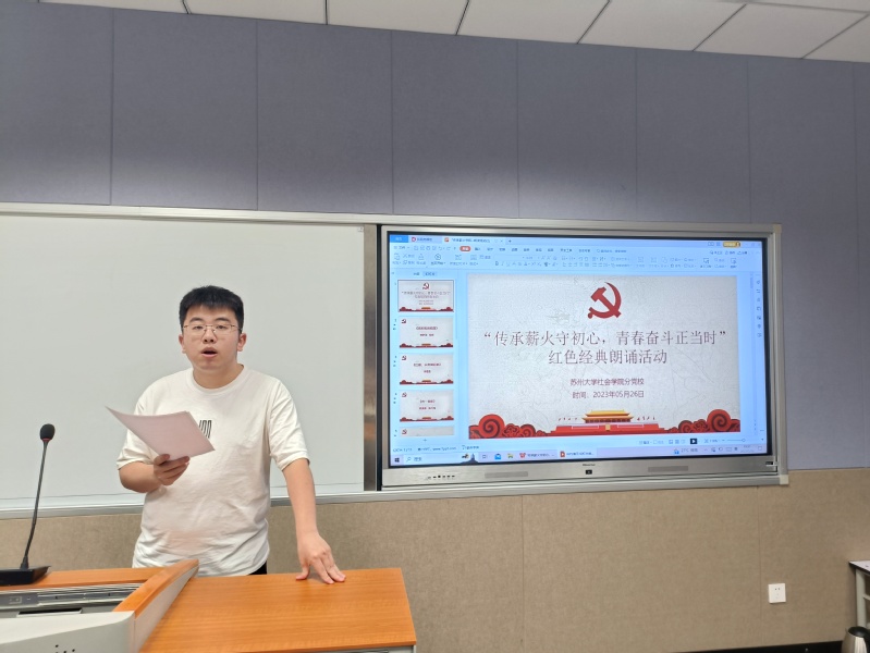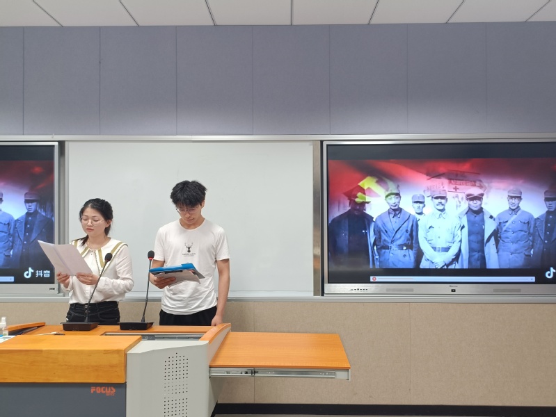 为深入学习贯彻习近平新时代中国特色社会主义思想,缅怀革命先烈的英雄事迹,感受革命先辈的崇高精神,坚定青年学生跟党走的信念,鼓励青年大学生为实现中华民族伟大复兴而贡献青春力量,蜜桃传媒 分党校于2023年5月26日晚成功举办了“传承薪火守初心,青春奋斗正当时”红色经典朗诵活动。第一期入党积极分子培训班学员参与此次活动,活动由2020级社会学专业龙超腾同学主持。