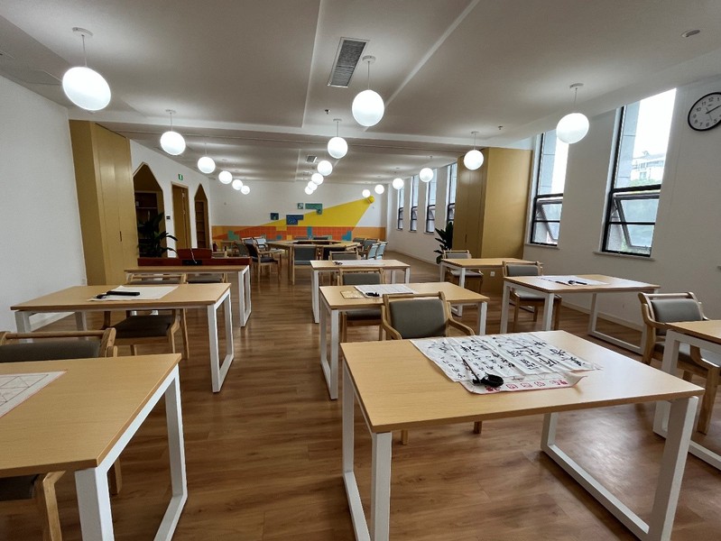紧接着参观了综合为老服务中心板块。该中心一共分为四层,一层、二层分别设立社区课堂、瑜伽舞蹈房、健身中心、养老顾问等功能空间,提供助学、助医、助餐、助急等多种类型的服务;三层、四层设置28间老人居室,共计56张社区嵌入式短期托养床位。