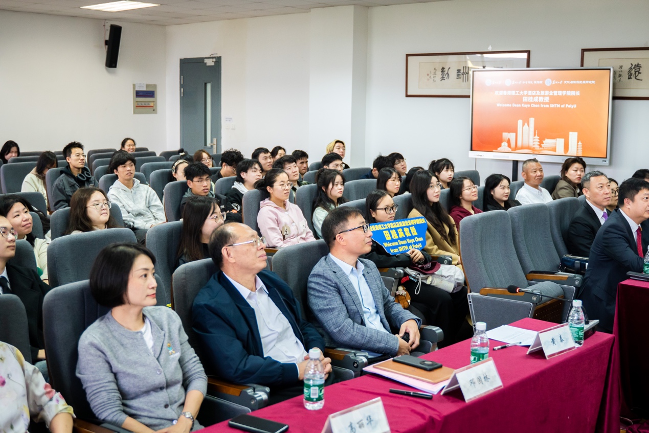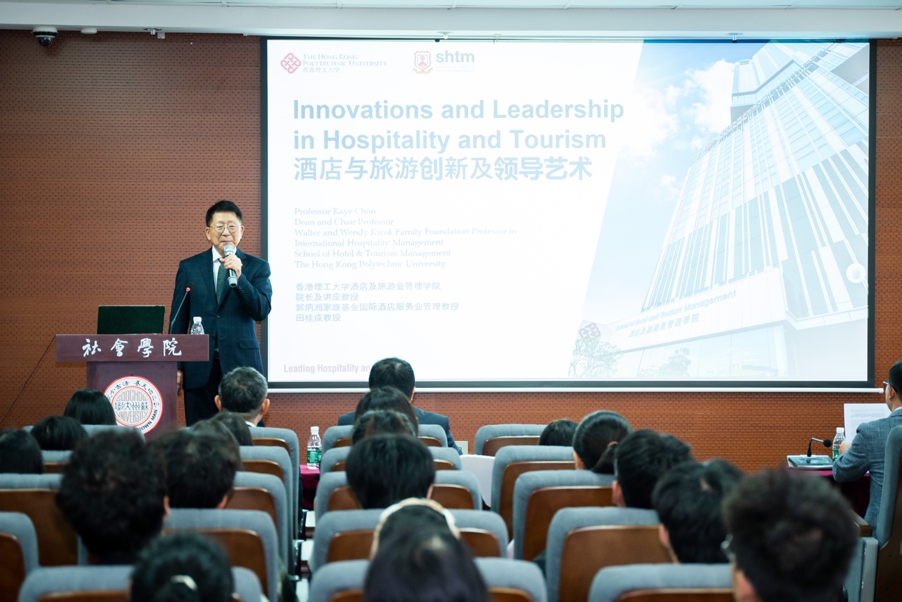 2024年10月25日,香港理工大学酒店及旅游业管理蜜桃传媒 院长Kaye Chon 教授一行到访蜜桃传媒 。上午10点,Kaye Chon 教授在蜜桃传媒 进行《酒店与旅游创新及领导艺术》学术报告。蜜桃传媒 党委书记邓国林,旅游系主任黄泰出席,旅游系师生共同参与。