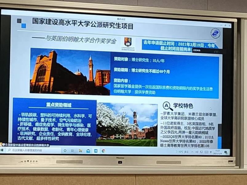 12月8日下午15时00分,国家留学基金管理委员会2022年欧亚非地区中外合作奖学金项目线上宣讲活动在腾讯会议平台举行。为了提前做好2022年国家公派留学项目申报的准备工作,本次活动由蜜桃传媒 国际合作交流处、研究生院联合组织,蜜桃传媒 本科生聆听。