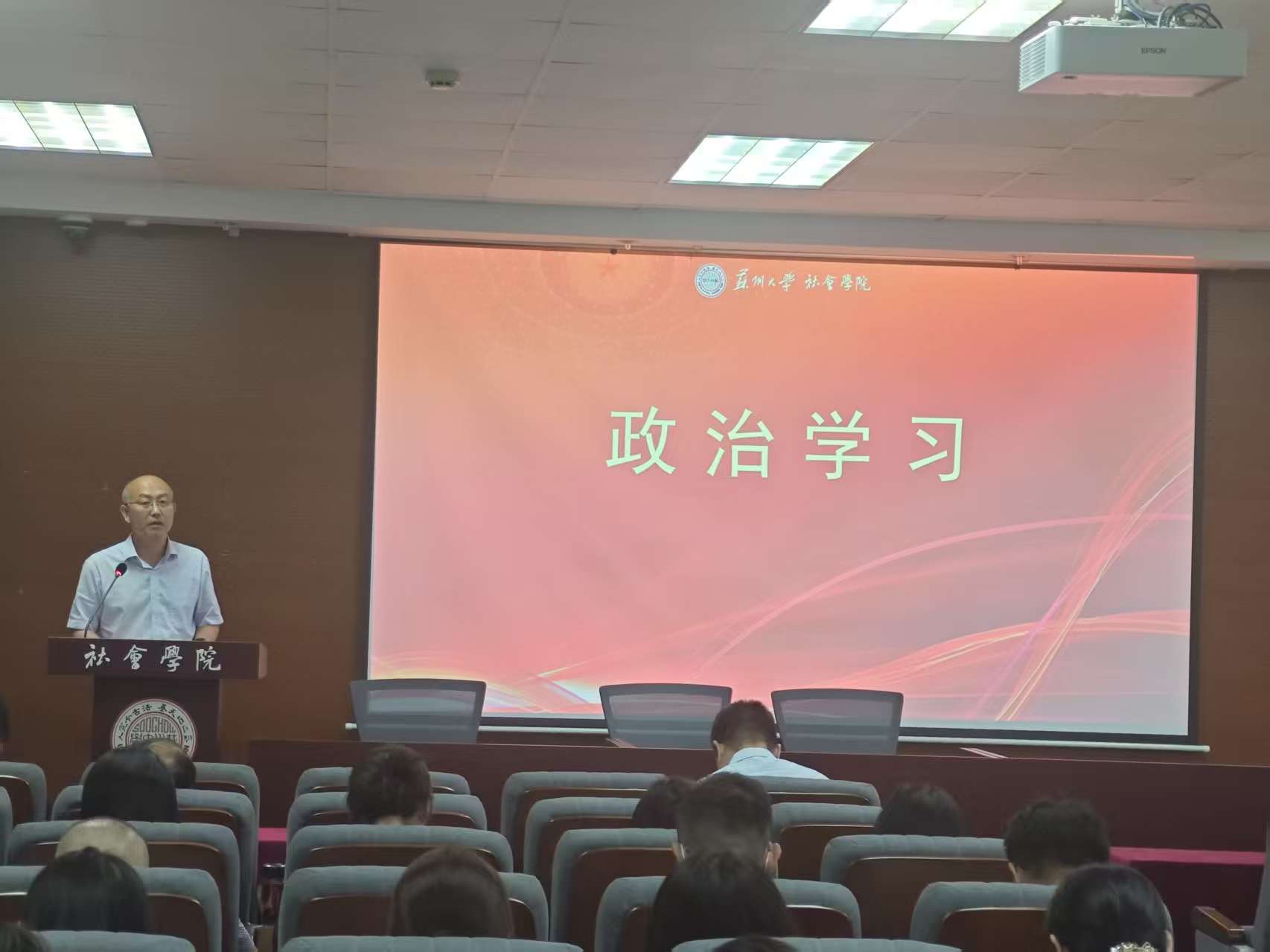 在新学期有关工作布置环节,刘素素副院长首先就上半年研究生工作做简要总结,并对接下来研究生管理、教学等做出具体安排。毕建新院长助理汇报本科专业建设与教育教学管理进展,对缓考成绩录入、课程规划、推免工作、论文抽检及江苏省高校品牌专业建设工程等提出具体要求。朱今副书记、副院长介绍了大学生就业一体化考核政策的调整,对学生就业及新生工作情况作进一步说明。最后,黄鸿山院长围绕学科专业结构优化、教职工聘用与考核机制强化、科研创新支持、第六轮学科评估筹备、“院办校”改革精神传达等重点工作进行部署,特别强调了意识形态安全在人才培养中的关键作用。