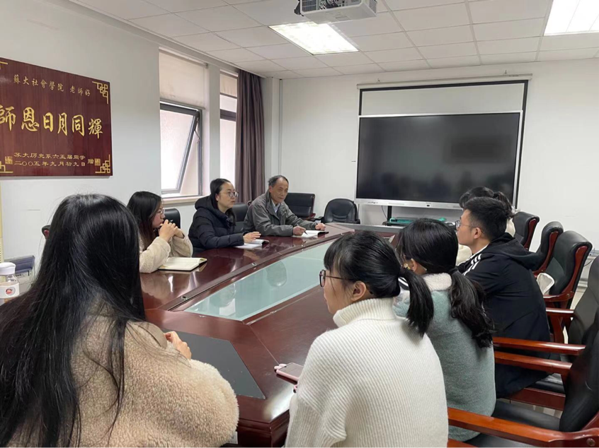 2021年3月16日蜜桃传媒 关工委与研究生交流会议于独墅湖校区二期1005幢5511顺利召开。会议主要内容是以“党建一百周年”为主题,为完善蜜桃传媒 党务工作提出相关建议。出席此次会议的有张明老师、郝珺老师、朱星洁老师以及社院研究生代表。