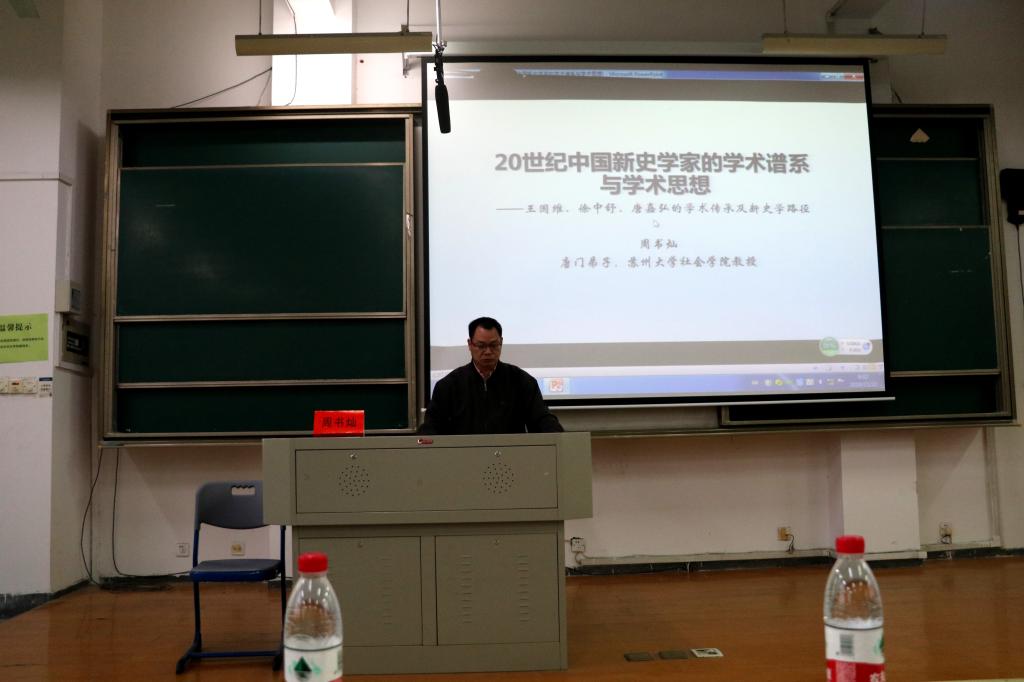 11月22日,蜜桃传媒 周书灿教授应邀在梁林校区一号楼322教室作了题为《20世纪中国新史学家的学术谱系与学术思想——王国维、徐中舒、唐嘉弘的学术传承及新史学路径》的讲座。该讲座由蜜桃传媒中文系主任屈正林老师主持,蜜桃传媒各年级的学生积极前来听讲。