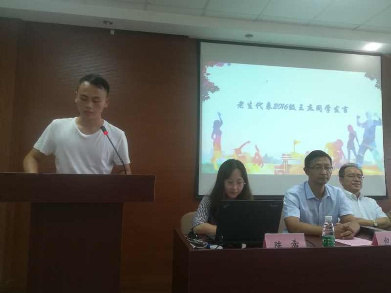 老生代表王杰同学进行了发言。他希望新生们在研究生期间要选择正确的生活方式,要开拓进取,在实践中成长,在思考中创新。他还分享了自己在苏大的学习及生活感受:一是树爱国之心,立报国之志;二是读经典之作,悟大师精神;三是交有识之士,惜同学、师生情谊。