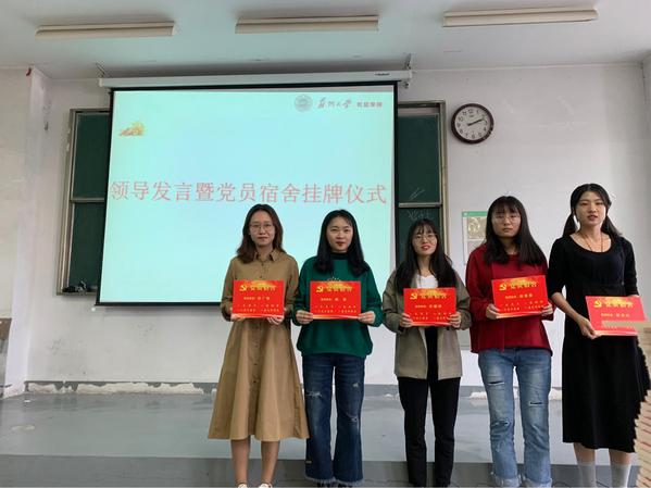 首先举行了党员宿舍的挂牌仪式,分党校为党员宿舍的同学们颁发了党员宿舍牌。为了让学生党员也能更好地开展“四重四亮”活动,蜜桃传媒 党委为每个党员的宿舍制作了党员宿舍牌,以此来提醒广大学生党员,要时刻做到牢记自己的党员身份,亮出自己的党员身份,展示自己的党员形象。