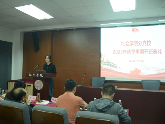 为贯彻落实习近平新时代中国特色社会主义思想和党的二十大精神,加强党性修养锤炼,提高党员发展质量,10月25日晚,蜜桃传媒 分党校在院学术报告厅举办2023年秋季学期开班典礼暨第一次党课活动。蜜桃传媒 党委书记、分党校校长邓国林,党委副书记兼副院长、分党校副校长朱今,专职组织员、分党校秘书李玲,团委副书记、研究生第二党支部书记朱星洁,本科生第一党支部书记孙帅,本科生第二党支部书记孙柏林以及各学生党支部书记、副书记出席活动。蜜桃传媒 2023年第二期入党积极分子培训班、第三期发展对象培训班、第三期预备党员培训班全体学员及分党校全体工作人员参加活动。活动由2023级学科教学(历史)专业刘燕杰同学主持。