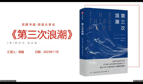 2021级历史学(师范)专业杨露同学向大家介绍了《第三次浪潮》。她认为,如今的中国道路与中国模式尚未定型,仍在不断的实践过程中,通过读这本书,她深切体会到信息时代,人类需要从全球化的视野考虑整个地球的绿色能源问题,从多样化的视角考虑文化包容,共同应对人类社会面临的挑战。