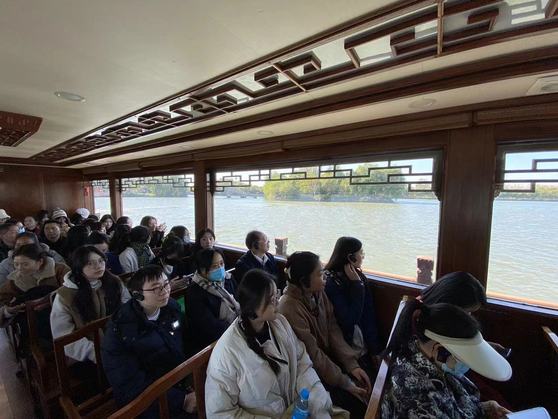 首先,师生一同前往湖心岛瞻仰红船。南湖烟波无声,两岸松柏常青,一艘小小红船承载千钧,播下了中国革命的火种,开启了中国共产党的跨世纪航程。“红船精神”既是中国革命的精神之源,也是党的先进性之源。大家怀着无比崇敬的心情,驻足红船边,感受“开天辟地、敢为人先的首创精神,坚定理想、百折不挠的奋斗精神,立党为公、忠诚为民的奉献精神”的内涵意蕴。在真情实景中体会建党之初的时局动荡与风雨飘摇,深刻领悟“红船精神”的历史力量和现实意义。