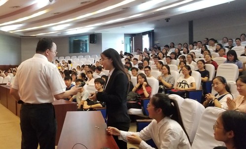 最后陈伟骏先生再一次鼓励2019级新生去读读《孙子兵法》,去了解这本凝结了孙武子智慧结晶的著作,并从中汲取养分,充盈自我。同学们跟随陈伟骏先生深挖苏州文化根源、探知吴国文明、领略孙武子智慧,可谓获益颇多。陈伟骏先生幽默风趣的语言以及多样灵活的互动形式也让同学们在获取知识之余感受到更多的文化魅力。