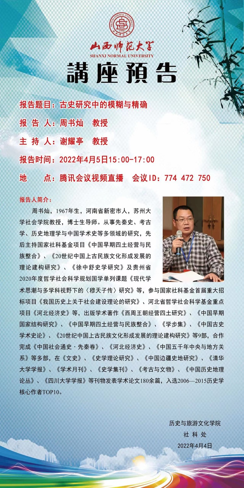 应山西师范大学历史与旅游文化蜜桃传媒 和社科处邀请,2022年4月5日下午,以《古史研究中的模糊与精确》为题,为该院师生做一场学术报告。报告由谢耀亭教授主持。周教授的报告主要分为五个部分。第一部分是“姜太公的身世、里籍与年寿问题”,周教授指出古代文献有关姜太公身世、里籍、年寿的记载来源极其复杂,真伪难辨,存在着诸多相互矛盾与不合理之处,留存史料的模糊性从根本上制约着已有研究结论的“精确性”。第二部分是“有关汲冢的若干争议与考订”,周老师认为迄今为止,汲冢书出土的年代、汲冢墓主及位置等若干关键性问题仍存在着诸多无法破解的谜团,先入为主地判定汲冢为战国晚期墓葬并讨论汲冢书的写定年代,会显得过于绝对和武断。第三部分是“《穆天子传》与汉武故事”,周教授认为《穆天子传》成书于西汉一说目前处于既无法得到确认又无法被彻底否定的两难境地。第四部分是“关于当前流失简的真伪之辩”,周教授指出流失简的真伪之辨应端正学风,流失简的真伪之辨具有长期性、复杂性,我们应该克服辩论中推论多于考证、主观武断的不良倾向,开展多学科综合研究。第五部分是“古史中的模糊性原则与中国古典学重建问题”,周教授指出模糊性与精确性之间的辩证关系,提醒我们古史研究的模糊性不影响对历史规律的揭示和部分历史真相的恢复,模糊性理论对于古史研究具有重要的借鉴价值和启发意义。周老师同样指出不对新旧史料进行科学的“澄滤”,曲解与割裂信古,疑古,释古之间的关系,必会将中国古典学重建引向新的误区,无论是走出疑古亦或是终结疑古都无法构成一个合格的学术命题。在讲座中,周教授旁征博引,例证充分,整个报告思路清晰,逻辑严密,使同学们受益良多。报告结束后,老师和同学们就相关学术问题进行交流互动,展开讨论,周老师对学生提出的问题一一进行了解答。报告在热烈的气氛中圆满结束。
