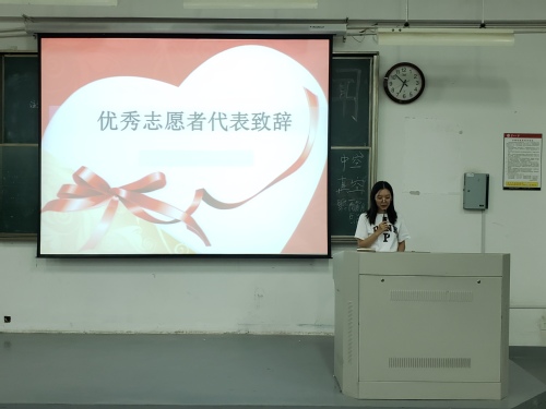 志愿者代表2016级劳动与社会保障尹士林同学和2016级劳动与社会保障郑笑越同学上台致辞。尹士林同学表示自己刚上大学时就以入党为目标,但是当初的他也很迷茫,通过双百双联与学长学姐进行交流后,便很快地融入了大学生活,成为团组织和党组织中积极的一员。尹士林希望自己能像当年的学长学姐那样,与新生分享自己的经验教训,尽自己所能去帮助他们。最后尹学长表达了对双百双联活动的期待,祝愿新生开启美好充实的大学生活。郑笑越同学也分享了自己作为新生和老生参加双百双联的经历,她将双百双联总结为“传”、“帮”、“带”,高年级学生可以通过分享经验来帮助学弟学妹们更好更快地适应大学生活。