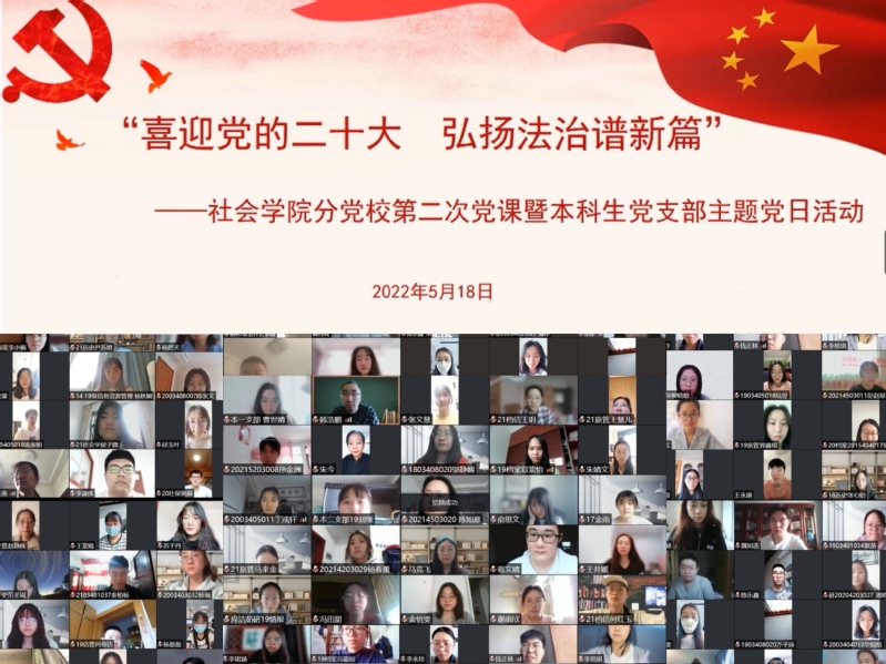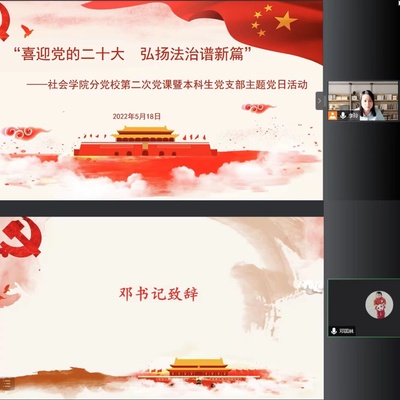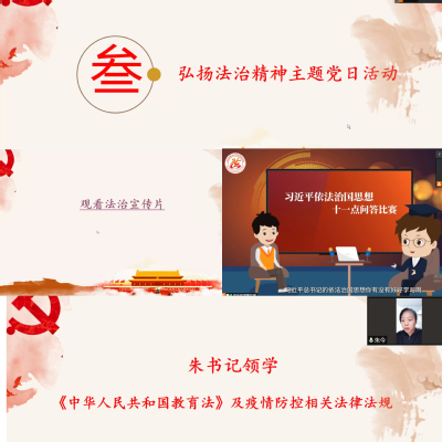 接着,本科生党支部开展弘扬法治精神主题党日活动。一则生动的习近平法治思想问答宣传片引导同学们树立法治观念,提高法治认识。