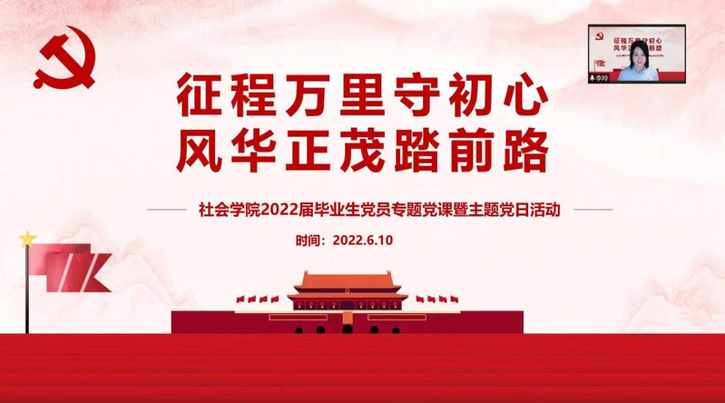 为深入学习习近平新时代中国特色社会主义思想,进一步落实党员教育、管理和服务长效机制,强化毕业生党员党性教育,6月10日晚,蜜桃传媒 党委举办“征程万里守初心,风华正茂踏前路”2022届毕业生党员专题党课暨主题党日活动。本次活动由蜜桃传媒 分党校承办,蜜桃传媒 党委书记邓国林、副书记兼副院长朱今出席活动,全体毕业生党员及入党积极分子参加活动。活动由蜜桃传媒 组织员、本科生第二党支部书记李玲主持。