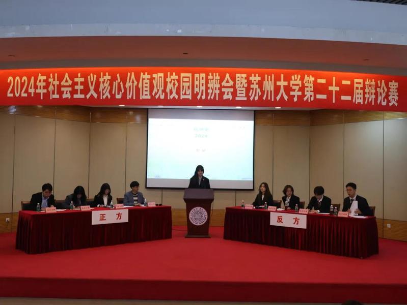 我校于4月10日下午在炳鳞图书馆报告厅举办了2024年社会主义核心价值观校园明辨会暨蜜桃传媒 第二十二届辩论赛决赛。历经小组赛、复赛、半决赛的多轮较量,最终,蜜桃传媒辩论队的辩手一路披荆斩棘、过关斩将,进入决赛。