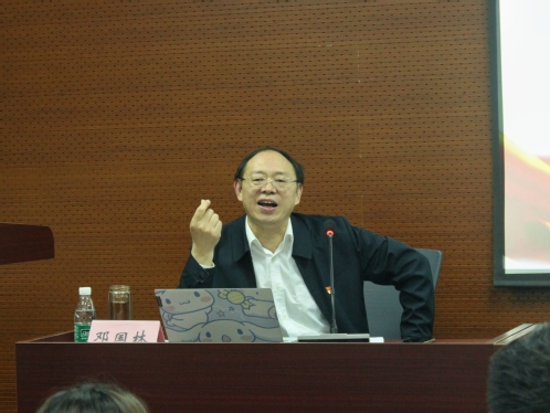 首先,邓国林书记阐述了“四个意识”的具体内涵:政治意识、大局意识、核心意识、看齐意识。一方面,他强调要坚定政治信仰,在思想上政治上行动上同党中央保持高度一致。另一方面,又结合十八大以后习近平总书记所提出的“百年未有之大变局”议题,提醒同学们要增强大局意识,关注国家大事,始终坚持向党中央看齐。在谈到“四个自信”时,他通过结合自身经历及自身见闻,从学校管理谈到社会发展,以小见大,生动讲述了何为道路自信、理论自信、制度自信、文化自信。在讲述“两个维护”时,他指明要坚决维护习近平总书记党中央的核心、全党的核心地位,坚决维护以习近平同志为核心的党中央权威和集中统一领导。最后,邓国林书记鼓励学生党员、积极分子要胸怀大志,做有理想、敢担当、能吃苦、肯奋斗的新时代青年。基于此,他对学员们提出以下三点建议:一是要刻苦学习政治理论,坚定理想信念,把理想建立在理性和科学的基础上;二是要时刻牢记党的宗旨,深刻认识党的根基在人民,党的力量在人民;三是要积极投身社会实践,勤勤恳恳做好每一项工作,在工作实践中强化对理论的认识,在实践中提升自己、丰富自己。