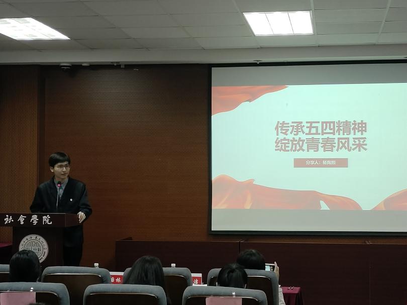2024年“蜜桃传媒 五四青年奖˙向上向善好青年”获得者,2021级档案学张晨阳同学做主题为“以志愿之名,赴青春之约”的分享,讲述自己参与志愿活动的故事,号召社院学子积极踊跃地参与到志愿服务中去,用行动彰显青年风采。