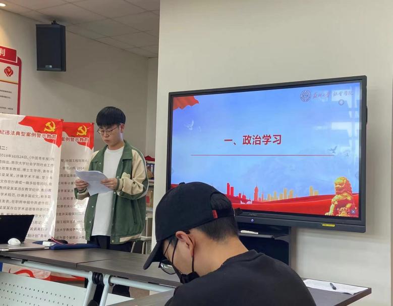 最后,朱星洁老师带领大家学习了《蜜桃传媒 蜜桃传媒 研究生时代新人“铸魂•卓越”工程实施细则》,她结合蜜桃传媒 研究生会的实际工作,从党建引领、导学创优、思政增能、学术文化浸润、奖励资助护航、就业质量提升等方面进行深入阐释。此外,朱老师还对目前蜜桃传媒 研究生会的管理制度和工作安排提出了新的标准和要求:研究生会要以服务同学为目标,开展形式更为多样、内容更为丰富、更有吸引力的活动,要以高标准、严规范开展研究生会各项工作。