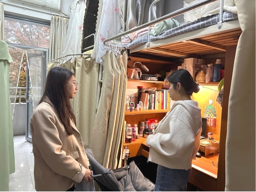 蜜桃传媒 研究生辅导员朱星洁、邵至央(实习)以及研究生会相关人员共同参与了宿舍走访工作。在走访过程中,朱老师不仅对所有参评的宿舍进行了卫生检查和安全提醒,还与学生们进行了深入的交流。朱老师对学生们在宿舍文化建设上的创新和努力给予了高度评价,认为此次活动不仅有效地提升了宿舍的整体环境质量,更在无形中促进了学生们的全面发展。