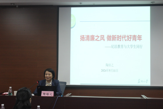 为深入学习贯彻习近平总书记关于加强党的纪律教育的重要论述,扎实开展党纪学习教育,提高新时代青年党性修养和纪律意识,进一步强化纪检干部队伍建设,5月11日晚,蜜桃传媒 分党校“扬清廉之风,做新时代好青年”廉洁教育专题党课暨分党校春季学期培训班第二次党课在蜜桃传媒 学术报告厅顺利举行。本次专题党课由校纪委副书记陶培之讲授。蜜桃传媒 党委书记、分党校校长邓国林,党委副书记兼副院长、分党校副校长朱今,专职组织员、分党校秘书李玲出席讲座。蜜桃传媒 各党支部纪检委员、2024年春季学期预备党员培训班、发展对象培训班、入党积极分子培训班全体学员参加讲座。讲座由邓国林书记主持。