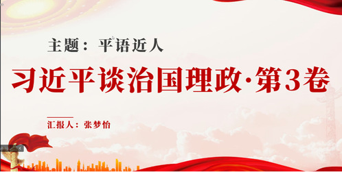 2021级信息资源管理专业张梦怡同学结合《习近平谈治国理政》第三卷,讲述了习近平总书记的重要讲话精神,并以小组讨论、读书笔记的形式分享了个人阅读成果。通过阅读这本书,她关注到改革对推动中国发展的重要性,对中国的未来发展方向有了更加清晰的认识和思考。