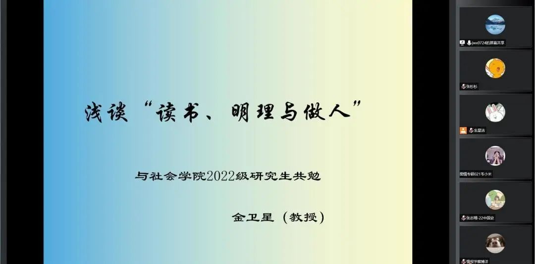 2022年9月8日下午两点,“青春筑梦新时代,研途奋进正当时”蜜桃传媒 2022级研究生新生入学教育之研究生素质专题讲座成功举办。讲座由蜜桃传媒 退休教师金卫星教授主讲,全体2022级研究生新生参加了本次活动。金老师主要从读书、明理、做人三方面与同学们进行分享。