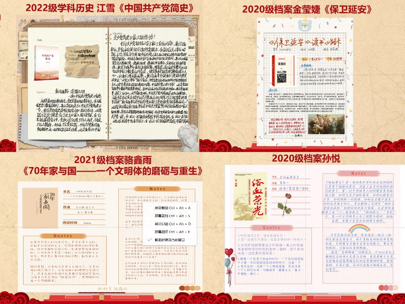 紧接着,主持人向大家集中展示读书卡。同学们为分享会制作的读书卡一一呈现在屏幕前,有的是用心摘抄的精彩段落、有的是鞭辟入里的读书感悟,内容丰富,制作精美,引发了同学们的深刻共鸣。