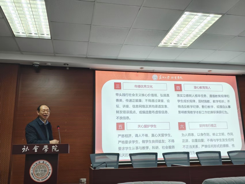 结合党委教师工作部要求,邓书记逐条讲解了《新时代高校教师职业行为十项准则》,并通报了多起教师师德失范警示教育案例。这些案例涵盖了学术不端、违反教学纪律、师生关系不当等多个方面。邓书记强调,这些案例为全体教师敲响了警钟,师德红线不可触碰,每一位教师都应时刻保持警醒,严格遵守教师职业道德规范,做到自重、自省、自警、自励,坚守师德师风底线,不越红线,坚持育人为先,树牢廉洁意识,营造风清气正的育人环境。